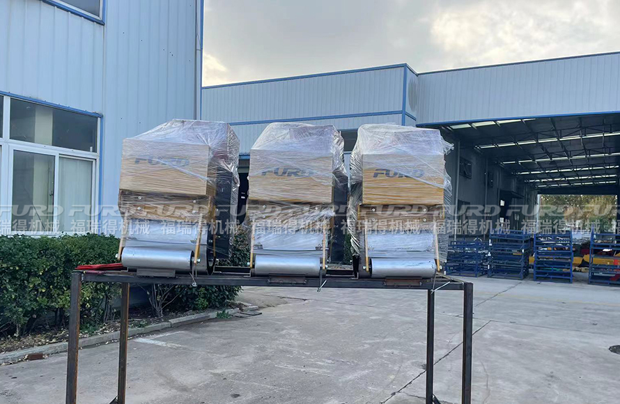 福瑞得3臺手扶單鋼輪壓路機打包發(fā)往日照