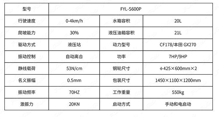 FYL-S600P 新款手扶雙鋼輪壓路機(jī)